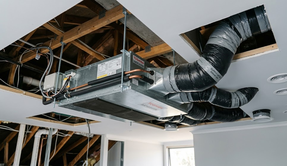 - Une hauteur suffisante dans les combles ou faux-plafonds pour accueillir l’unité intérieure et le réseau de gaines (au moins 25 cm).