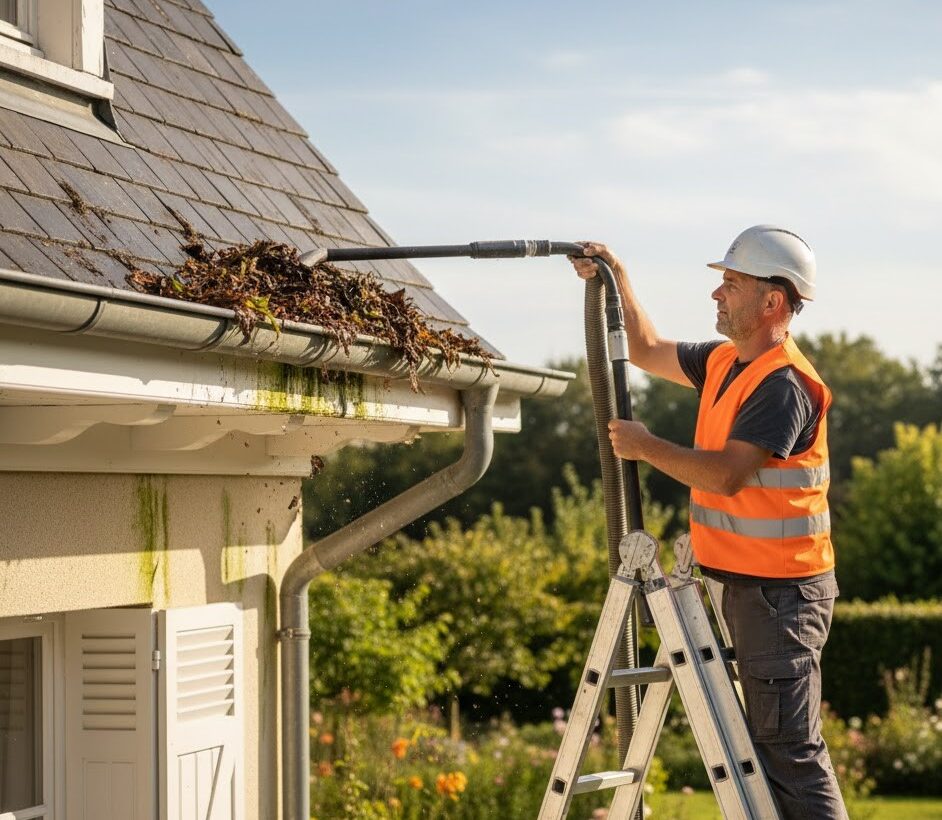 Le nettoyage des gouttières et corniches est une tâche souvent négligée, mais il joue un rôle essentiel dans la préservation de votre toiture et de votre habitation. Les angles des gouttières sont particulièrement vulnérables, car ils constituent des zones propices à l’accumulation de feuilles, mousse et autres débris. Un entretien régulier permet d’éviter les obstructions, les infiltrations d’eau et la dégradation progressive de la structure de la maison.