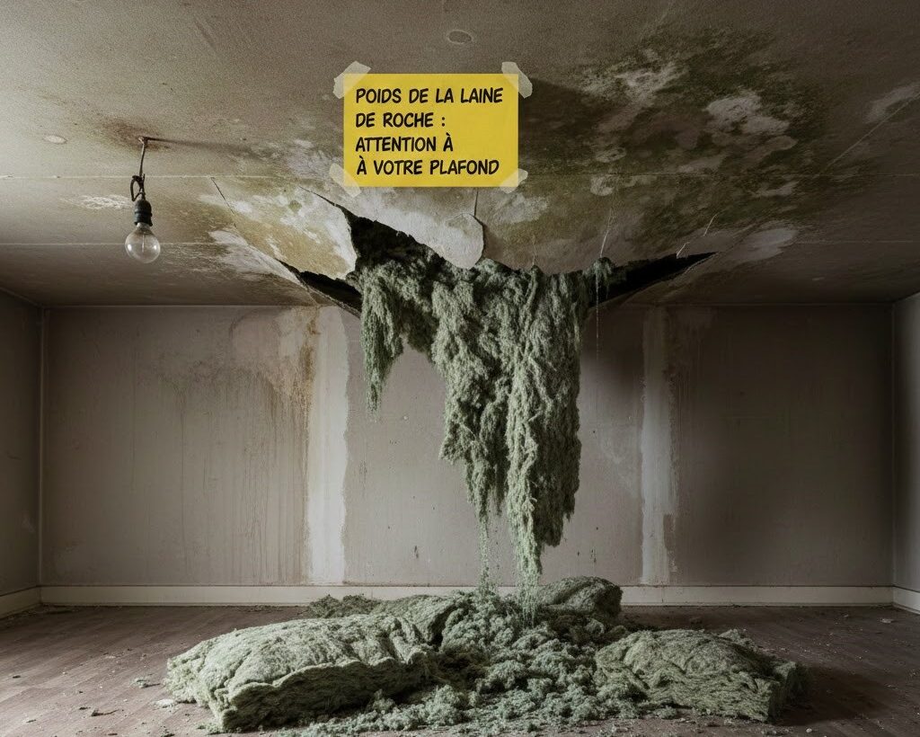 La laine de roche peut absorber un peu d’humidité si l’aération est insuffisante, ce qui augmente le poids sur le plafond :