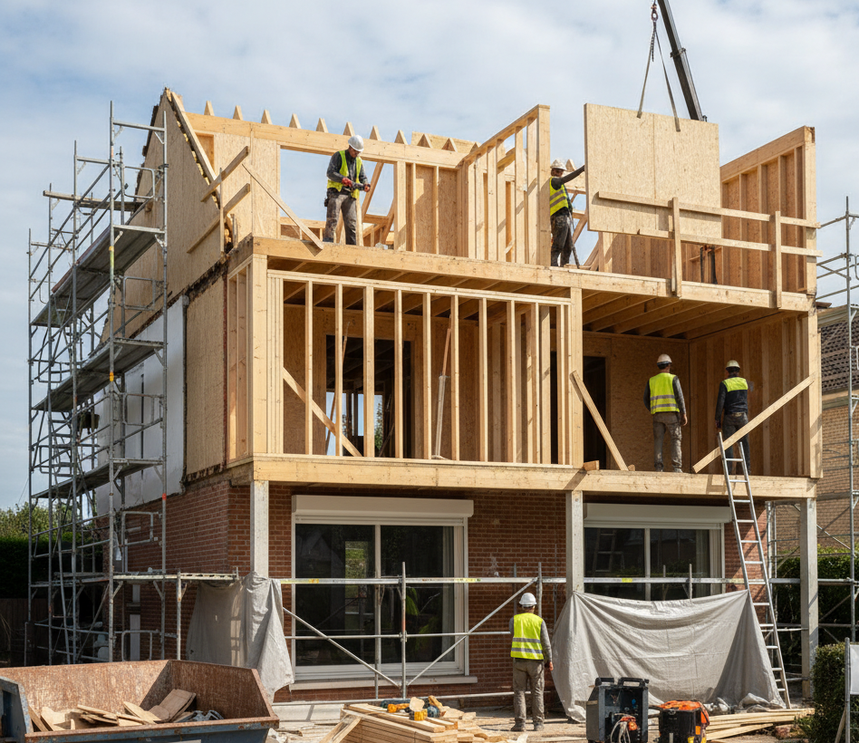 | Surélévation totale | Ossature bois ou maçonnée | 2 800 – 3 800 € | Gain maximal de surface, forte valorisation immobilière | Chantier plus long, renforts structurels souvent nécessaires |